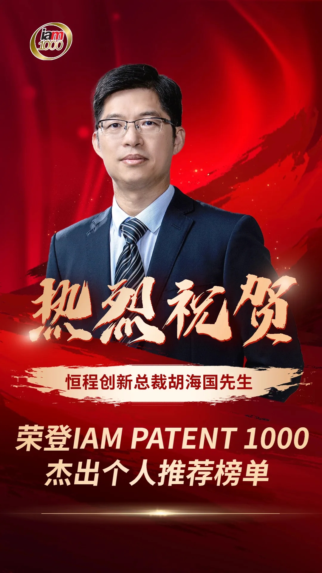 喜获国际荣誉!祝贺胡海国总裁荣登IAM PATENT 1000杰出个人推荐榜单