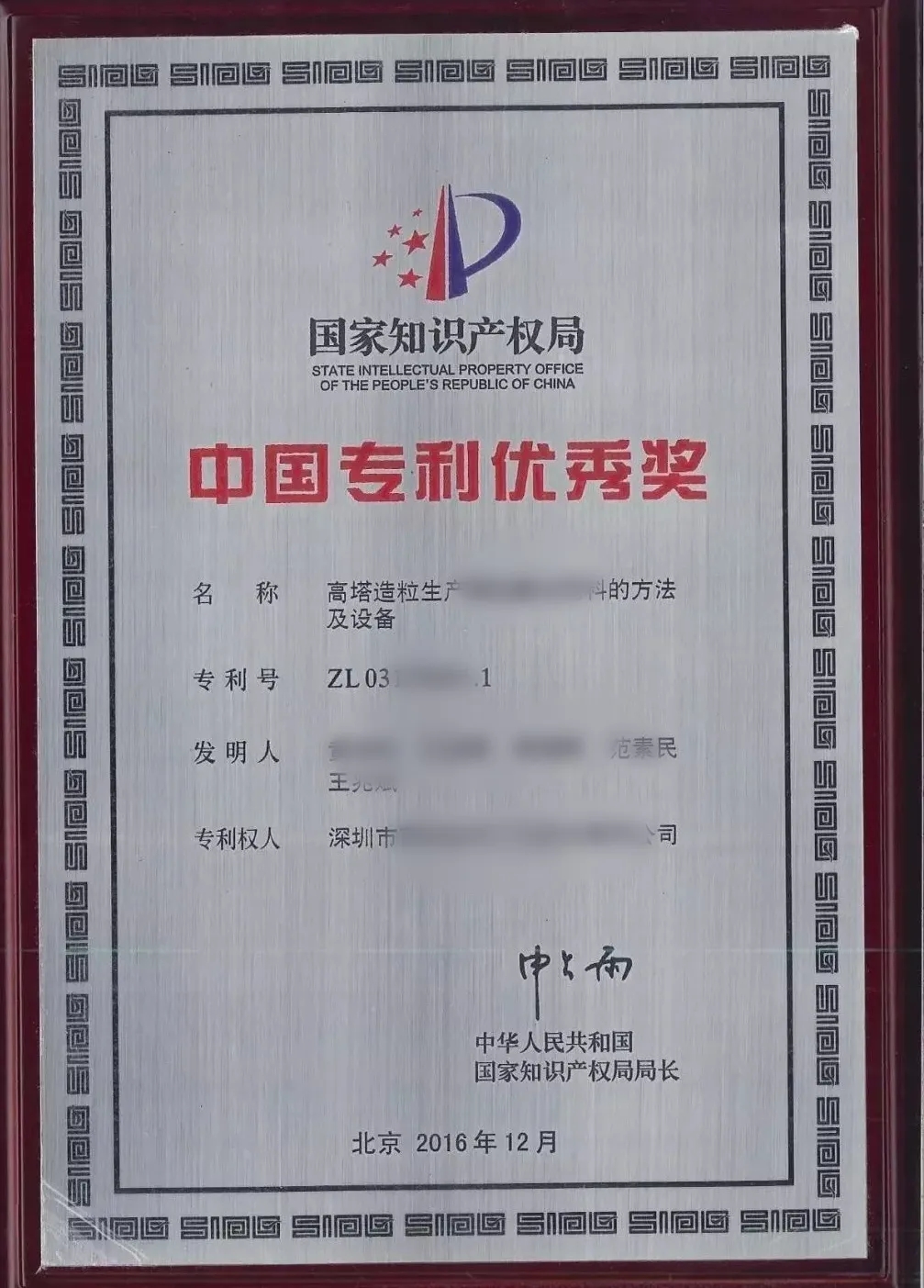 该专利为“高塔造粒”生产复合肥专利ZL0313****.1,权利所有人是深圳全某公司。